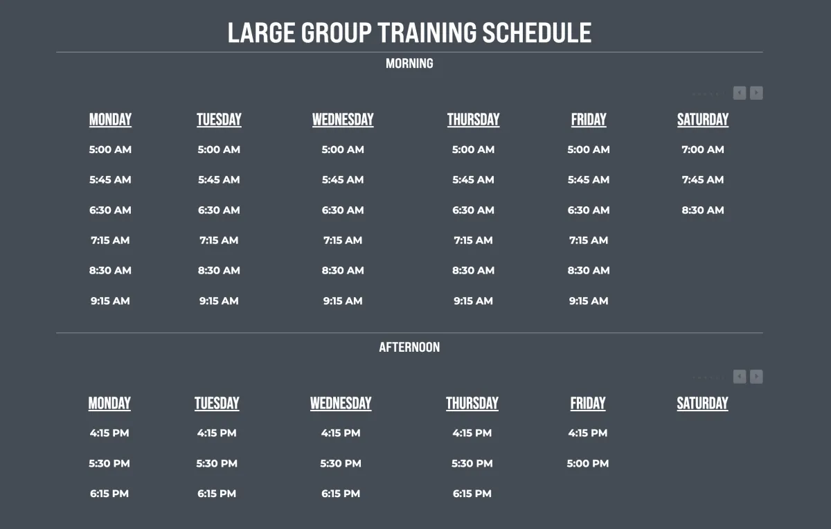 Our large group training sessions are 40-minute, high-energy strength and conditioning sessions led by the best coaches in the fitness industry. We don’t just work out — we train with purpose! If you love fun, fast-paced workouts with an amazing group, our large group training is for you.
